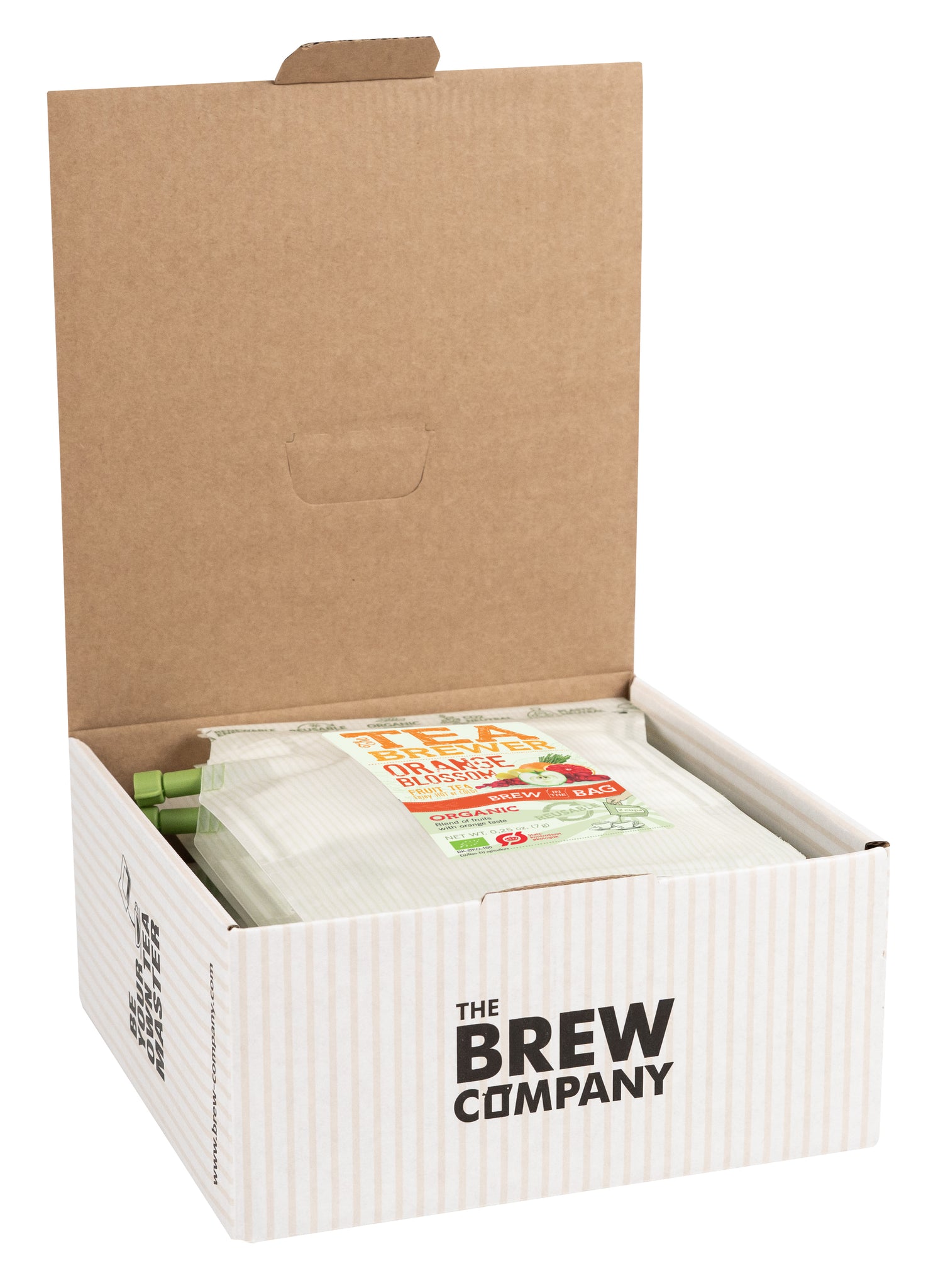1. 扭开茶包出水口, 打开顶部封口. 调整底部, 令其可平稳置于平面上.